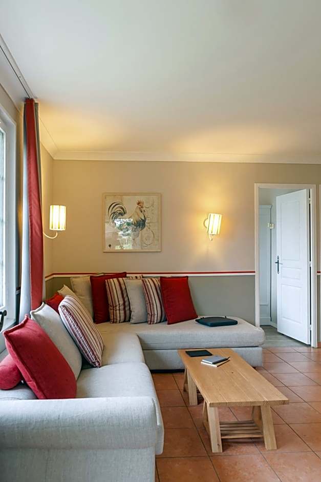 The Village Pierre & Vacances Normandy Garden hotel offers a variety of rooms including one-bedroom duplex houses with terrace or balcony, two-bedroom duplex or single-story houses with terrace, studios with sleeping alcoves and terrace, one-bedroom apartments with sleeping alcoves and balcony, and three-bedroom single-story houses with terrace. All rooms are non-smoking, with different room sizes ranging from 291 sqft to 624 sqft. The occupancy of the rooms ranges from 3 adults and 2 children to 8 adults and 4 children. The beds in the rooms vary, including options such as twin beds, double beds, sofa beds, futon mats, and bunk beds.