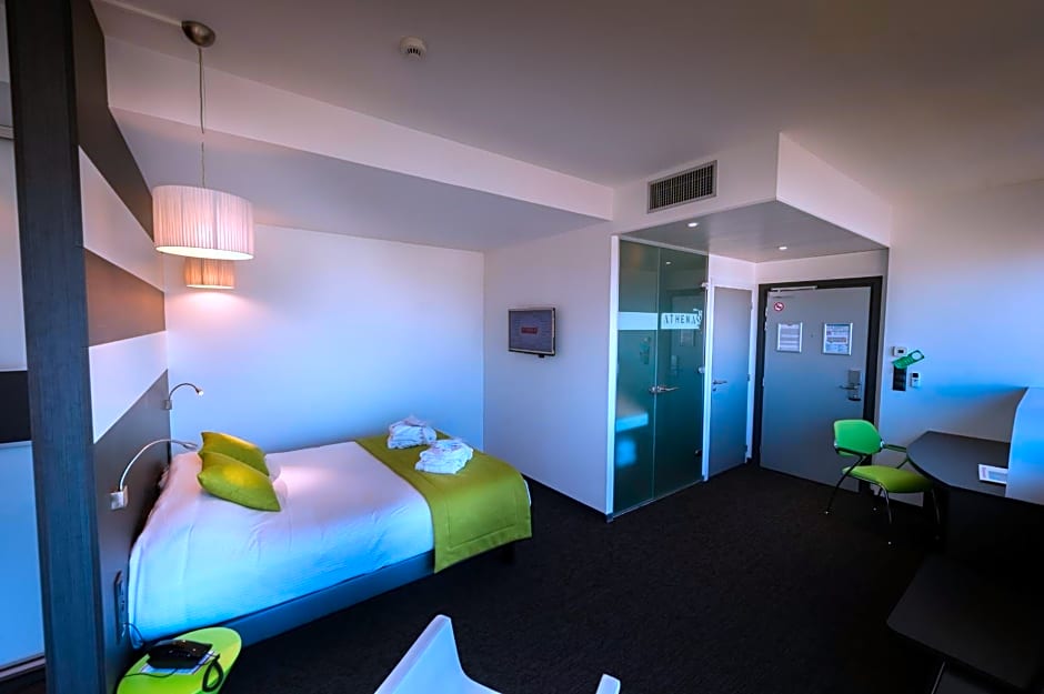 What types of rooms does Hôtel Restaurant Athena Spa offer?