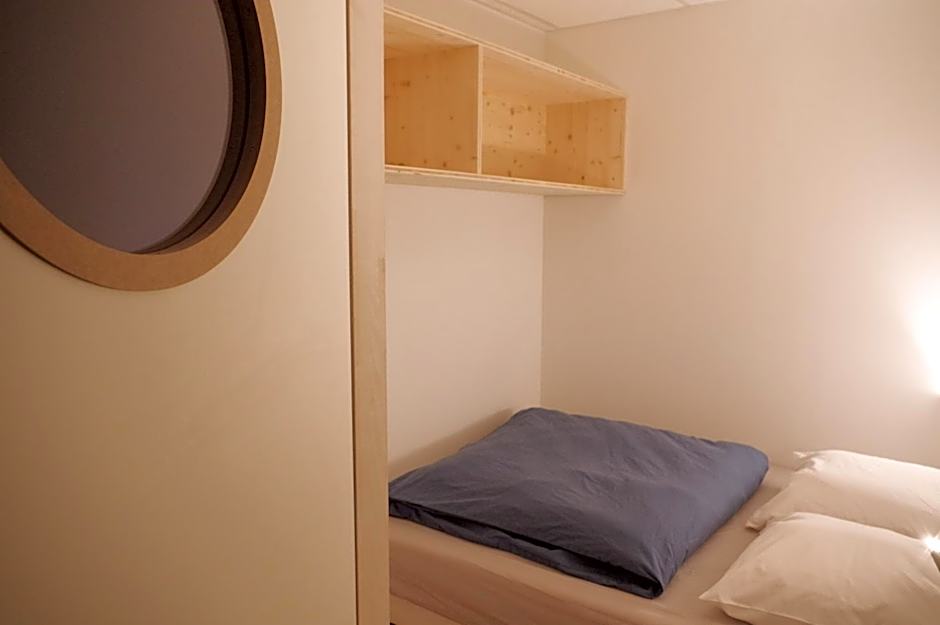 Accommodations span budget-friendly options, including dormitories such as an 8 Twin layout and a 6 Twin layout, plus cabins (Quadruple and Twin, single-use) and family rooms, along with various apartment configurations. Non-smoking rooms are standard, ensuring comfortable stays. Payment is cash-only, and an optional shuttle service is available for an extra charge.