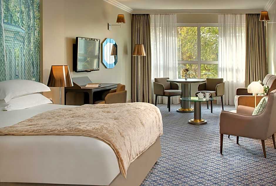 As acomodações atendem a diferentes necessidades, incluindo quartos Deluxe (com opções de vista para a cidade, vista para o parque ou terraço), Junior Suites (vista para o jardim ou vista para o spa), quartos Twin, Suite Deluxe, Suíte de Luxo e Suíte Presidencial, entre outros. Animais de estimação são permitidos mediante solicitação; pode haver cobrança adicional, facilitando levar um companheiro peludo na viagem.