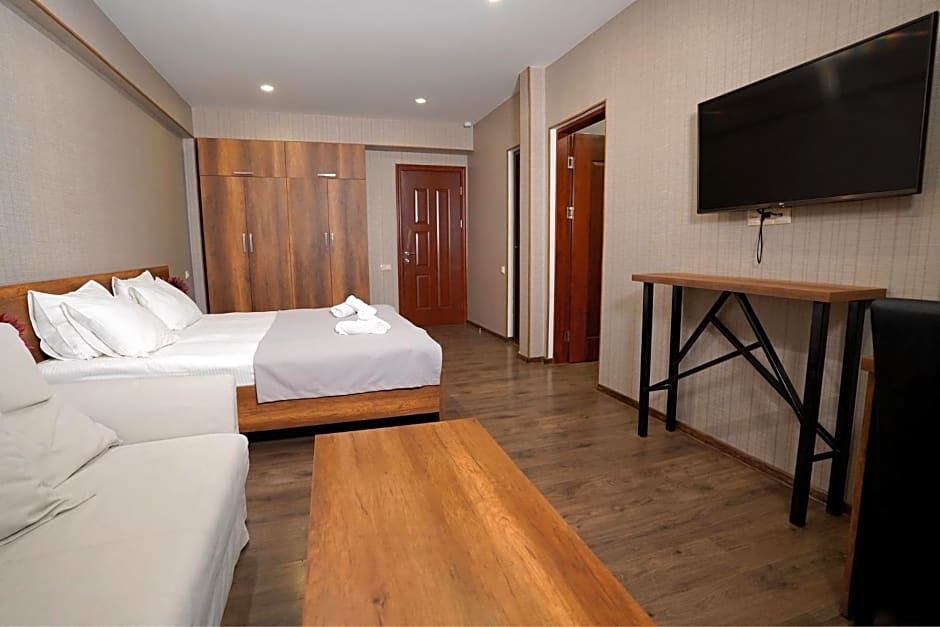 The Loft Hotel Bakuriani offers a range of rooms including Double Rooms with Balcony, One-Bedroom Suites, and Classic Triple Rooms. The Double Rooms can accommodate 2 adults and 1 child with 1 King size bed and 1 Sofa Bed. The One-Bedroom Suites can accommodate 4 adults and 2 children with 2 Sofa Beds and 1 Double bed. The Classic Triple Rooms can accommodate 3 adults and 2 children with 1 Twin bed and 1 King size bed. Smoking is not allowed in any of the rooms.