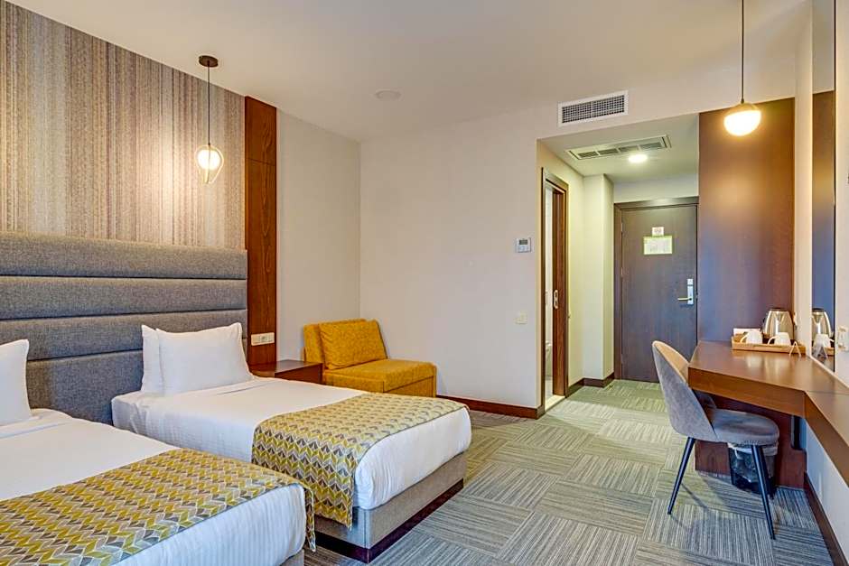 Providing free toiletries and bathrobes, this twin room includes a private bathroom with a shower, a hairdryer and slippers. The air-conditioned twin room provides a flat-screen TV, soundproof walls, a mini-bar, a seating area as well as city views. The unit offers 2 beds.