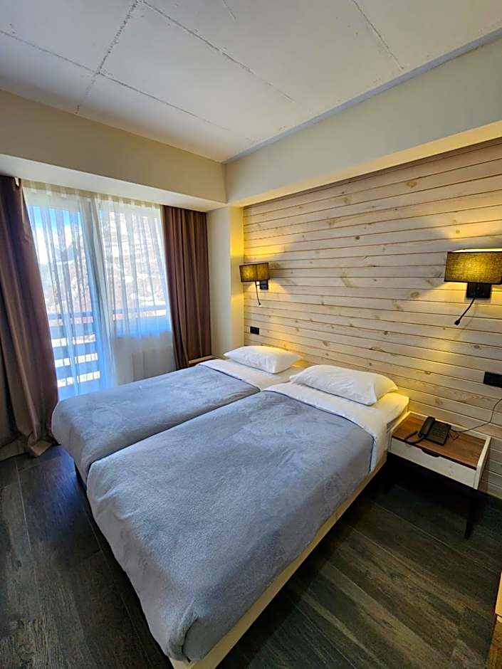 The Gudauri Hills Apart Hotel offers a variety of apartments and twin/double rooms. The apartments range in size from 517 to 829 sqft and can accommodate 7 to 10 adults with multiple bed options. Smoking is not allowed in any of the rooms. The standard double or twin rooms are 312 sqft and can accommodate 3 adults, with a choice of twin beds or a queen size bed.