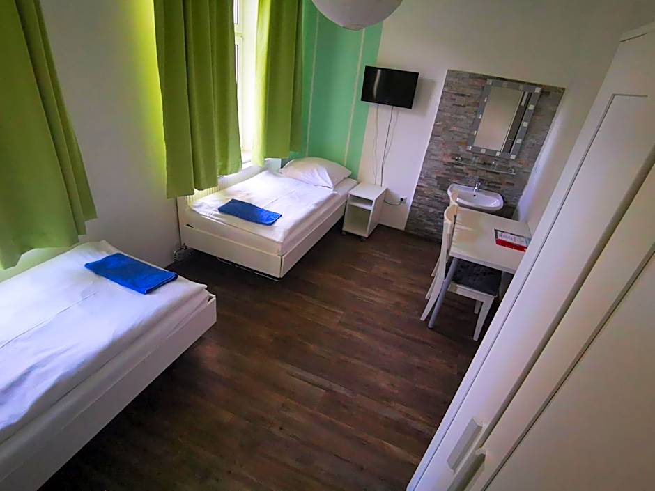 Providing free toiletries, this twin room includes a shared bathroom with a shower. This twin room features a wardrobe, heating, a TV with satellite channels and city views. The unit offers 2 beds.