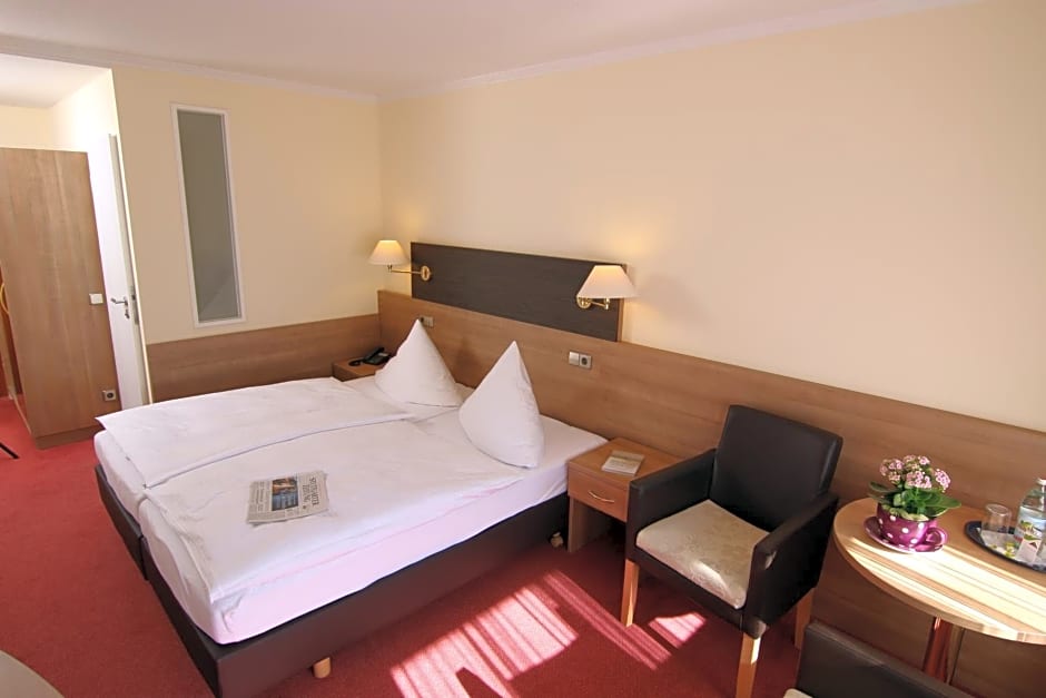 Hotel Bergfrieden offers Double Rooms for 2 adults and 1 child, featuring 2 twin beds and measuring 226 sqft. Single Rooms are available for single occupancy, accommodating 1 adult with a twin bed and the same room size. Smoking is not allowed in both room types.