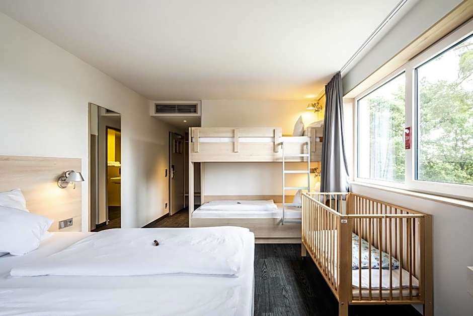The Serways Hotel Bruchsal West offers Single Rooms, Double Rooms, and Family Rooms. The Single Rooms can accommodate 1 adult and 1 child, while the Double Rooms and Family Rooms can accommodate 2 adults and 1 child. All rooms are non-smoking and have twin beds. The Family Rooms also have a bunk bed. Room sizes range from 108 sqft to 291 sqft.