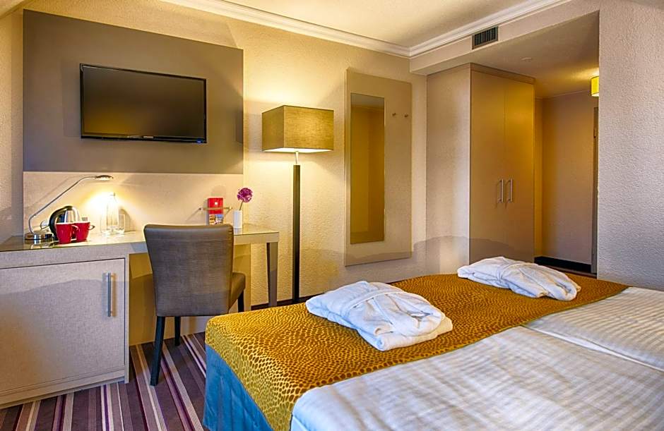 Guests at Leonardo Hotel Heidelberg Walldorf can enjoy a range of amenities, including free parking, a pet-friendly policy (with additional charges), an inviting indoor swimming pool, and complimentary Wi-Fi. Golf enthusiasts will appreciate the on-site golf course, while relaxation-seekers can unwind in the sauna or on the sun deck. Families are well-catered for with kid-friendly buffet options and a children's menu available. The hotel also offers room service, a restaurant, and a bar for when hunger strikes.