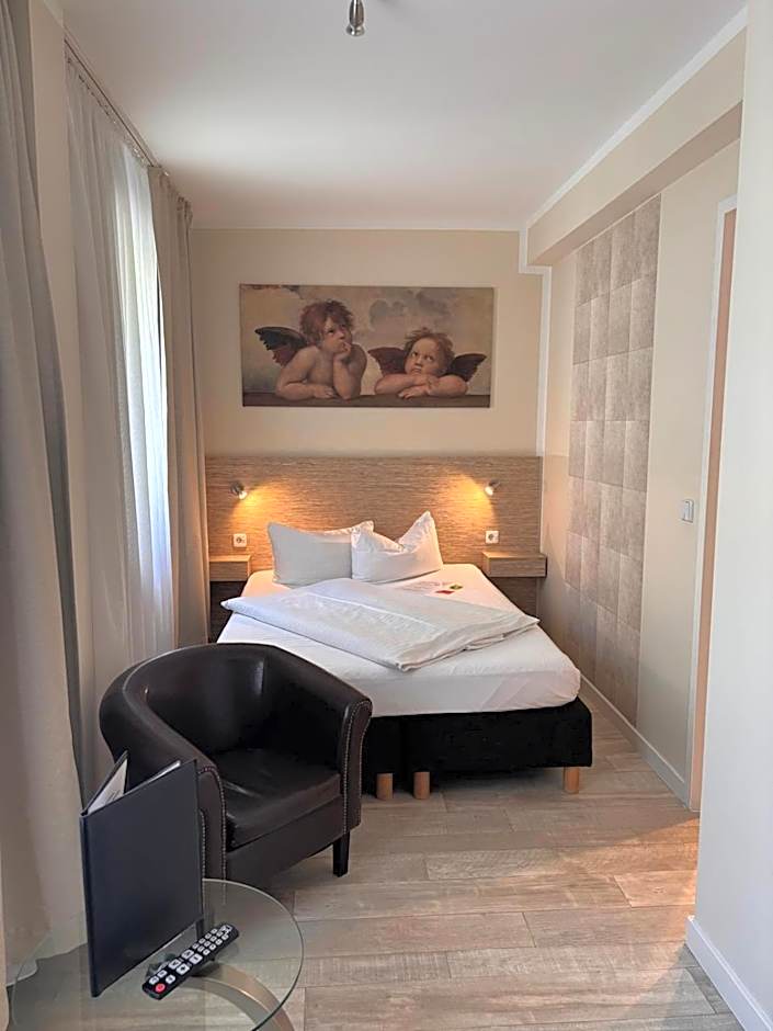 The single room features a seating area, a wardrobe, as well as a private bathroom boasting a walk-in shower and a hairdryer. The single room provides a flat-screen TV with cable channels, parquet floors, a tiled floor, heating as well as a quiet street view.