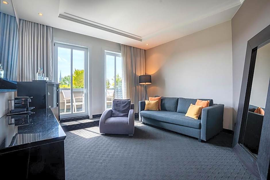Spacious suite with a flat-screen TV with Blu-Ray player and Sky channels. Also includes a mini-bar, air conditioning and balcony.