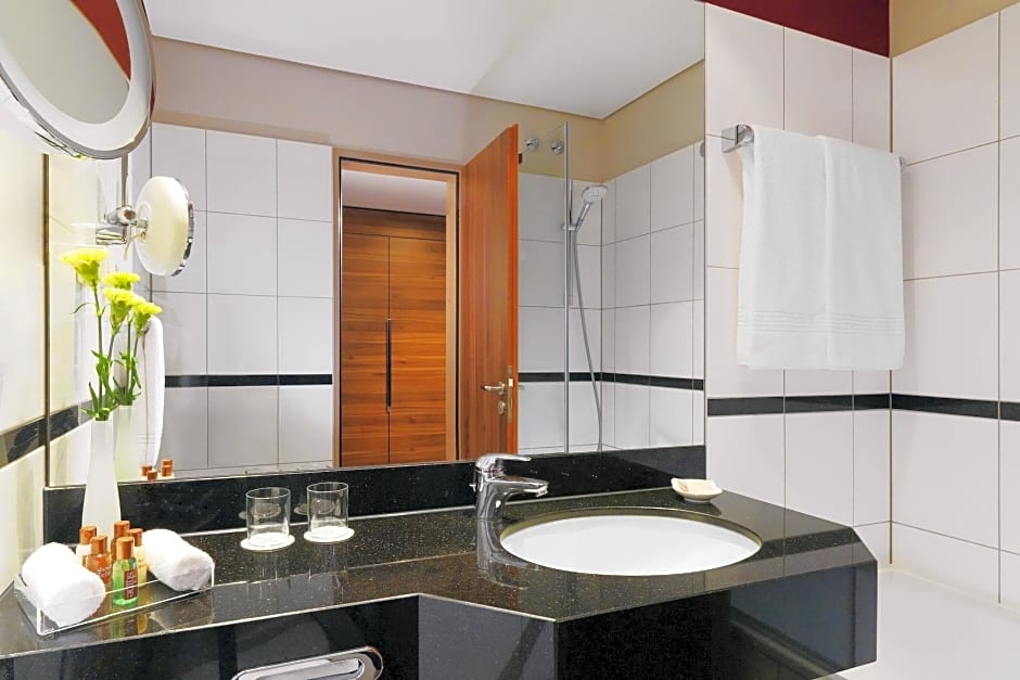 Guests at Sheraton Duesseldorf Airport Hotel can enjoy a range of leisure amenities during their stay. The hotel offers a bar, fitness center, business center, and BBQ facilities for their enjoyment.