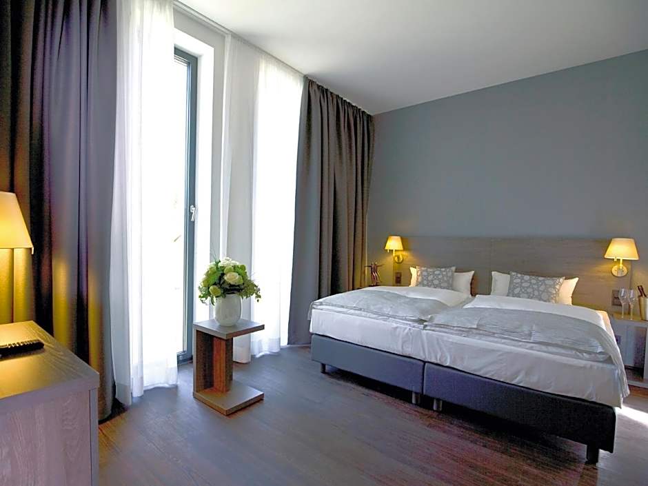 Dining at the on-site Restaurant im Eislinger Tor is a highlight, with traditional ambiance and Italian cuisine setting a comforting tone. After a flavorful bite, enjoy a drink at the bar, soak up sun on the sun deck, or step onto the terrace to take in garden or river views.