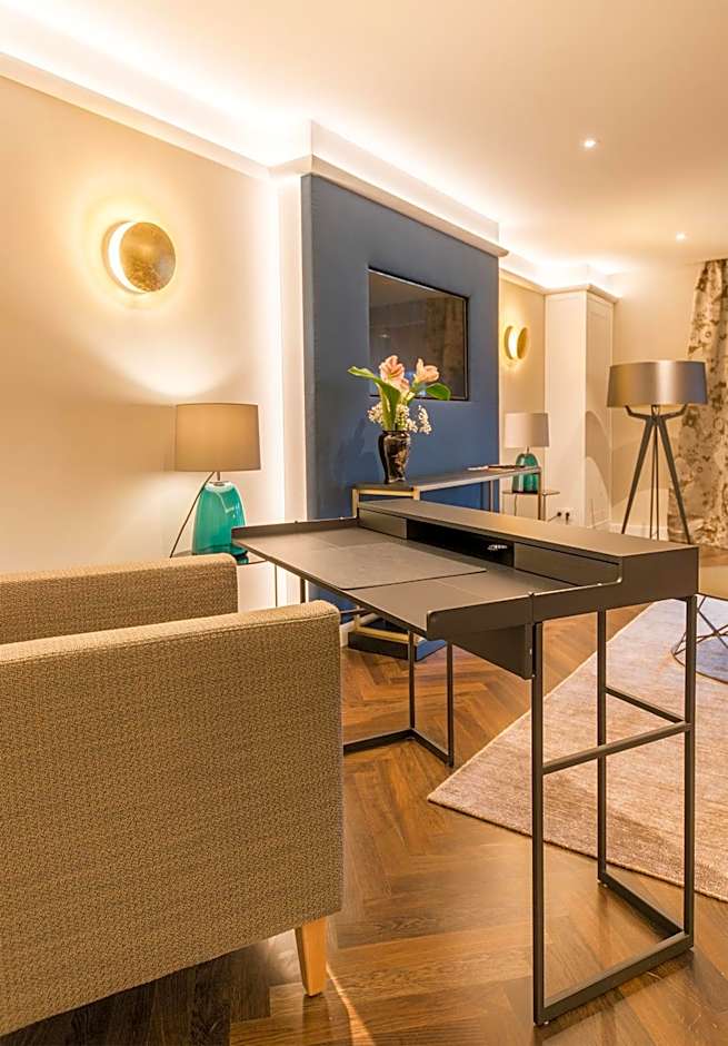 Spacious suite with a separate bedroom, flat-screen TV and a wellness shower in the private bathroom.