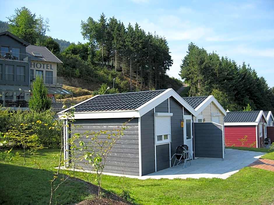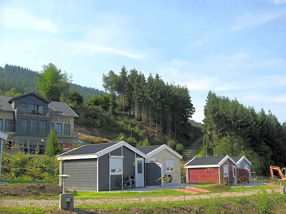These rooms are located in wooden chalets, 98 feet from the main hotel building. The room includes a refrigerator, bathroom with shower, and a small terrace with views of the vineyards.