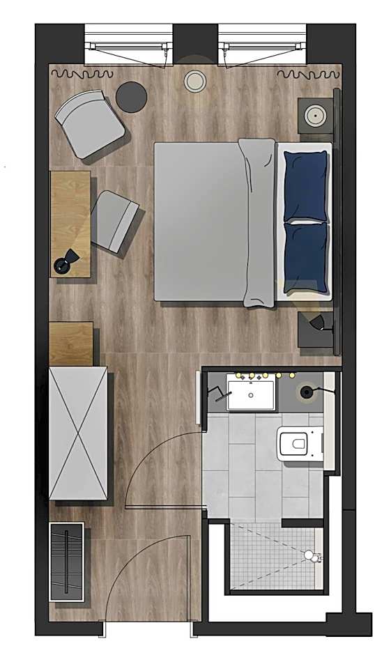 The double room provides air conditioning, soundproof walls, as well as a private bathroom featuring a walk-in shower and a hairdryer. The double room offers a wardrobe, a safe deposit box, heating, as well as a flat-screen TV with cable channels. The unit offers 1 bed.