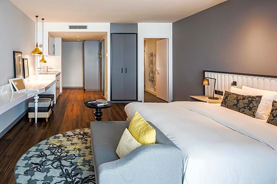 At Capri by Fraser, Frankfurt, guests can choose from various room types including Executive Studio, Deluxe Twin Studio, Deluxe One-Bedroom Apartment, Executive One-Bedroom Apartment, and Deluxe Studio. These rooms can accommodate between 2 to 3 adults along with children, with bed sizes ranging from King to Twin. Smoking is not allowed in any of the rooms.
