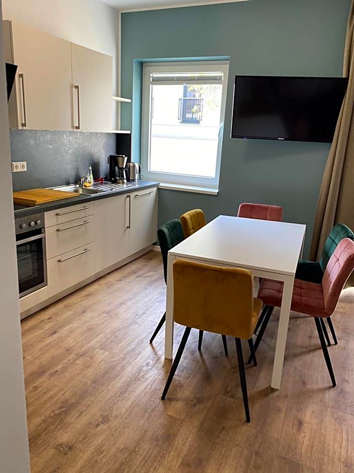 At the Villa am Bahnhof in Fulda, guests can choose from three types of rooms. The Studio room is 301 sqft and accommodates 2 adults with 2 Twin beds. The Two-Bedroom Apartment is 743 sqft and accommodates 6 adults with 2 Queen size beds and a Sofa Bed. The Apartment is 517 sqft and accommodates 4 adults with 1 Queen size bed and a Sofa Bed. Smoking is not allowed in any of these rooms.