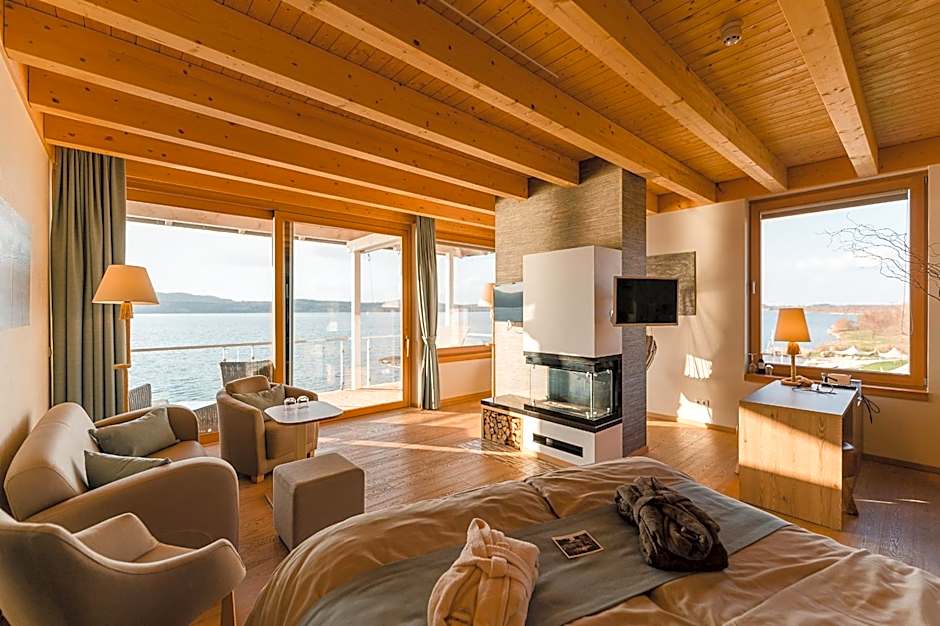 Located on the 2nd or 3rd floor and directly overlooking the lake, this room includes a walk-in rain shower, a cozy seating area and floor heating.
