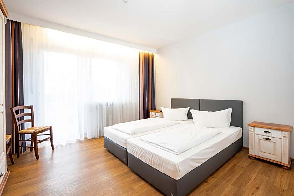 The double room provides a wardrobe, parquet floors, as well as a private bathroom featuring a shower and a hairdryer. Rooms on the upper floors are reachable by elevator.