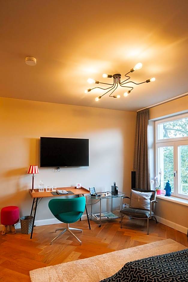 The Villa Glanzstoff hotel offers a variety of suite rooms, including Junior Suite, Executive Suite, Superior Suite, and Deluxe Suite. All of these rooms do not allow smoking and can accommodate 2 adults. The bed sizes range from double beds to queen and king size beds.