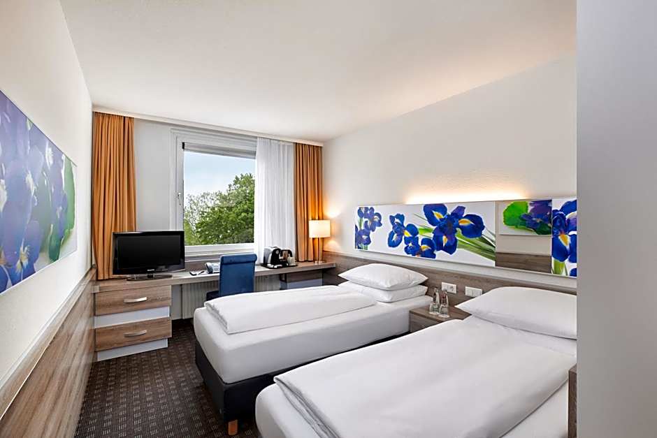 The H+ Hotel Frankfurt Airport West offers Comfort Double Rooms and Comfort Single Rooms. The Comfort Double Rooms accommodate 2 adults and 1 child, have a size of 140 sqft, and do not allow smoking. They contain 2 twin beds and 1 queen-size bed. The Comfort Single Rooms accommodate 1 adult, have a size of 140 sqft, and also do not allow smoking. They have 1 twin bed.