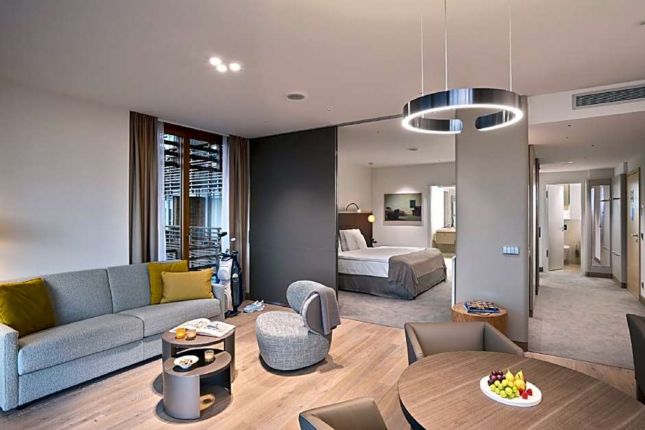 Bright and spacious suite with modern décor features a flat-screen TV, mini-bar and a terrace with charming views of the golf course. Also includes a separate bedroom and a living area with a sofa bed, as well as a kitchenette and large bathroom.