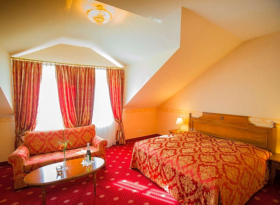 This room offers extra space and features a seating area.