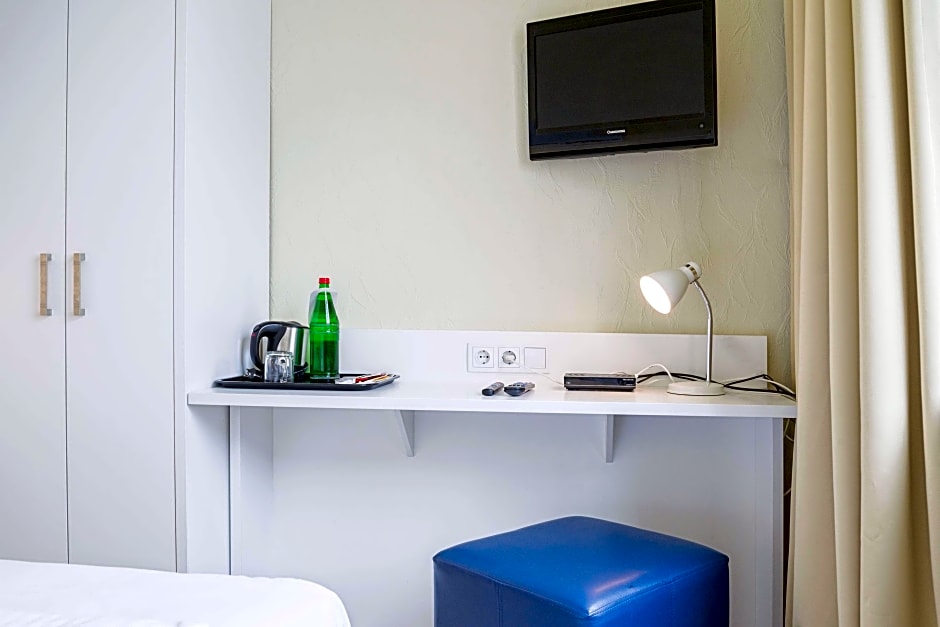 The double room provides soundproof walls, a wardrobe, as well as a private bathroom featuring a shower and a hairdryer. This double room features parquet floors, heating, a flat-screen TV and city views. The unit offers 2 beds.