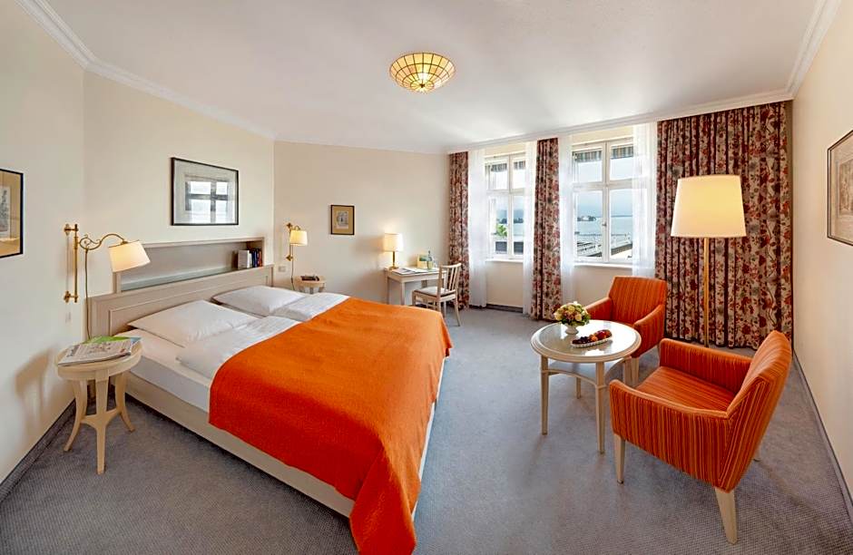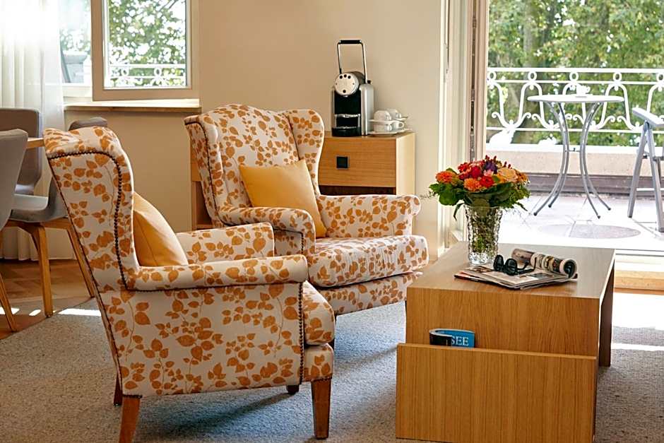 This 1st-floor suite features a large balcony with beautiful view of Lake Constance, Lindau and the Alps. It also offers a private spa with sauna.