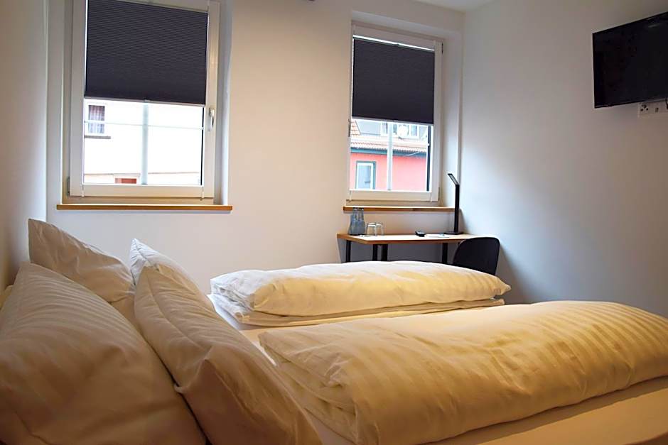 The Herberge Bärenschenke hotel offers standard double rooms with 183 sqft of space and a non-smoking policy, accommodating 2 adults and 1 child with 1 queen size bed. There are also family rooms available, with disability access, offering a larger room size of 269 sqft, non-smoking, and accommodating 4 adults and 3 children with 4 twin beds. Economy double rooms are also an option, providing a smaller space of 140 sqft and non-smoking, with a queen size bed accommodating 2 adults and 1 child.
