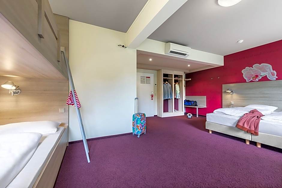 At Serways Hotel Heiligenroth, guests can choose from Family, Double or Twin, and Single rooms. The Family Room accommodates 2 adults and 2 children in a room with 2 Twin beds and 1 Double bed spanning 215 sqft. The Double or Twin Room is fit for 2 adults with 1 Double bed and 2 Twin beds in a 215 sqft space, while the Single Room caters to a single adult with 1 Twin bed in a 129 sqft room. Smoking is not allowed in all rooms.