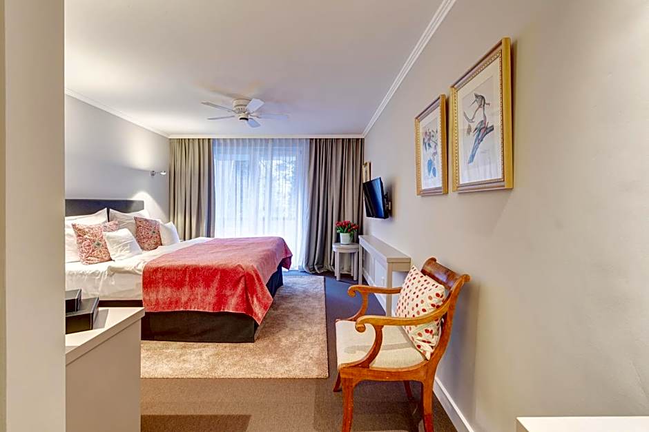 The Hotel Admiral offers a variety of room types. The Superior Double Rooms are non-smoking and can accommodate 3 adults with a sofa bed and a queen-size bed. There is also a Superior Double Room with a balcony and garden view, which can accommodate 2 adults with a queen-size bed. The hotel also offers Suites with a king-size bed and a sofa bed, accommodating 2 adults. All rooms listed are non-smoking.