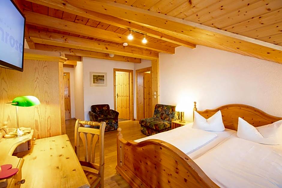 The Akzent Hotel Alpenrose offers Single Rooms with a twin bed, Family Rooms with multiple twin beds and a double bed, Double Rooms with a queen size bed and twin beds, and Double Rooms with an extra bed for single occupancy. Smoking is not allowed in any of the rooms. Occupancy ranges from single to up to four adults in the Family Room.