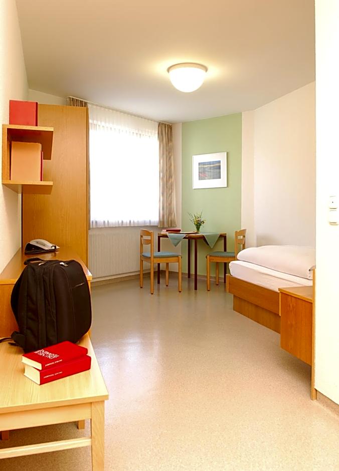 At Kloster St. Josef, guests can choose between a Comfort Double Room for single occupancy with a Queen size bed, a Comfort Single Room with a Twin bed, or a Comfort room that can accommodate 2 adults and 1 child. Smoking is not permitted in any of these rooms. Room sizes range from 161 sqft to 205 sqft.