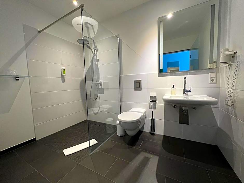 Our comfort rooms are all equipped with a shower/toilet, 46-inch TV, mini-bar, electric shutters, free WiFi and telephone calls to German landline/mobile networks.