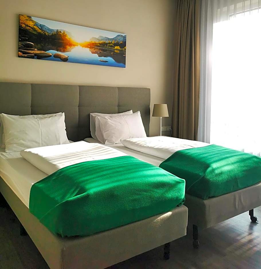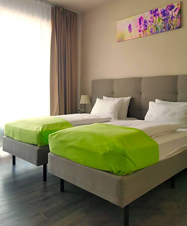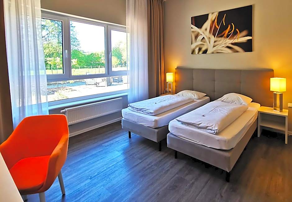 The twin room offers a wardrobe, a safe deposit box, as well as a private bathroom boasting a walk-in shower and a hairdryer. This twin room has parquet floors, heating, a flat-screen TV with satellite channels and garden views. The unit has 2 beds.