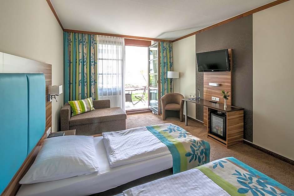 The comfortable rooms at , like the "Comfort" room accommodating 2 adults and 1 child, are smoke-free, ensuring a pleasant stay for all guests. With an array of amenities and beautiful garden views, your room will be a relaxing retreat during your visit to Olching. Enjoy soundproof accommodations that will give you a peaceful night's sleep after a day of exploring the local area.