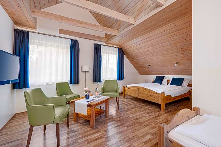 Offering free toiletries, this triple room includes a private bathroom with a shower and a hairdryer. The triple room offers a flat-screen TV with satellite channels, a seating area, a wardrobe, parquet floors as well as garden views. The unit offers 2 beds.