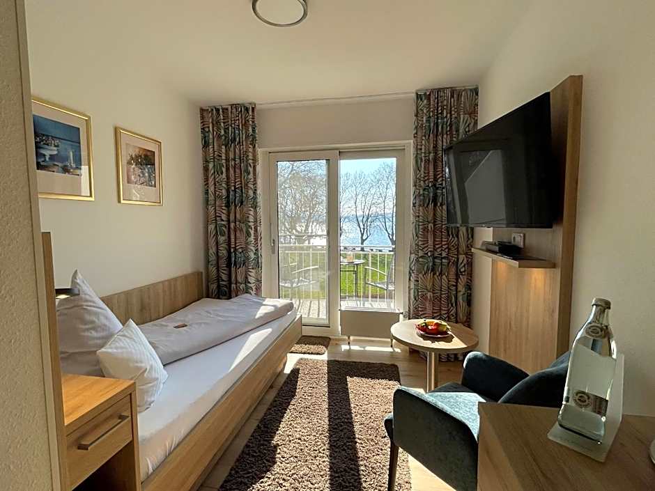 Single room with balcony, partially with lake view,shower/ WC and cable TV, and free wi-fi.