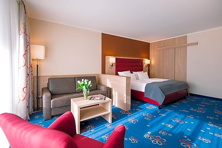 The junior suite also includes a seating area with a sofa.