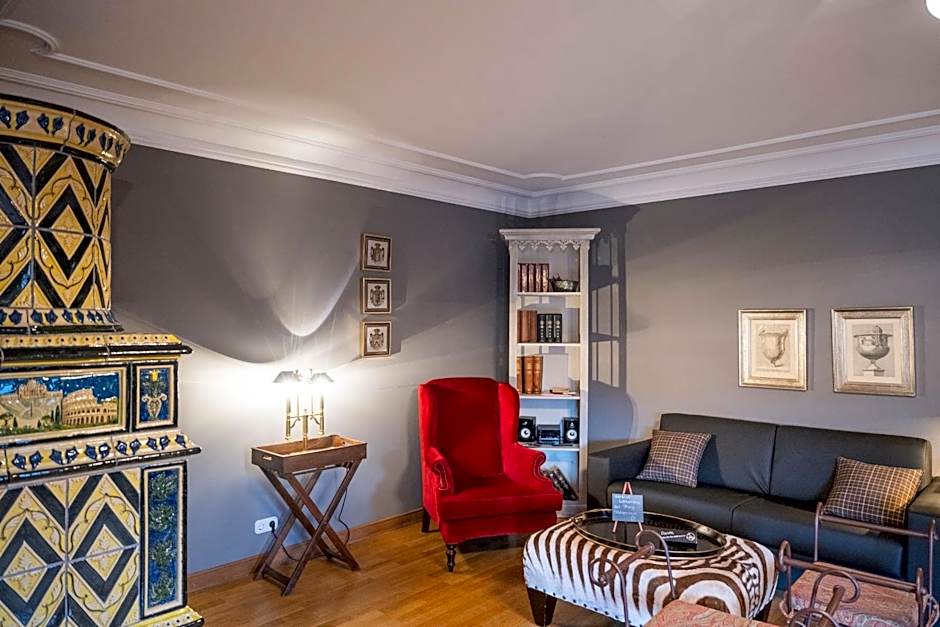 This grand suite has an exta-large bed and a separate living room with unique accessories.