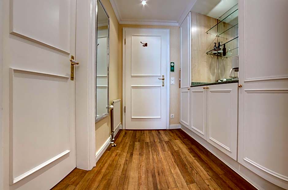 Spacious suite offering separate bedroom/living room and a balcony or terrace. In the entrance area, guests will find a built-in mini-bar, coffee and tea facilities and a closet. The suite does not offer a sea view.