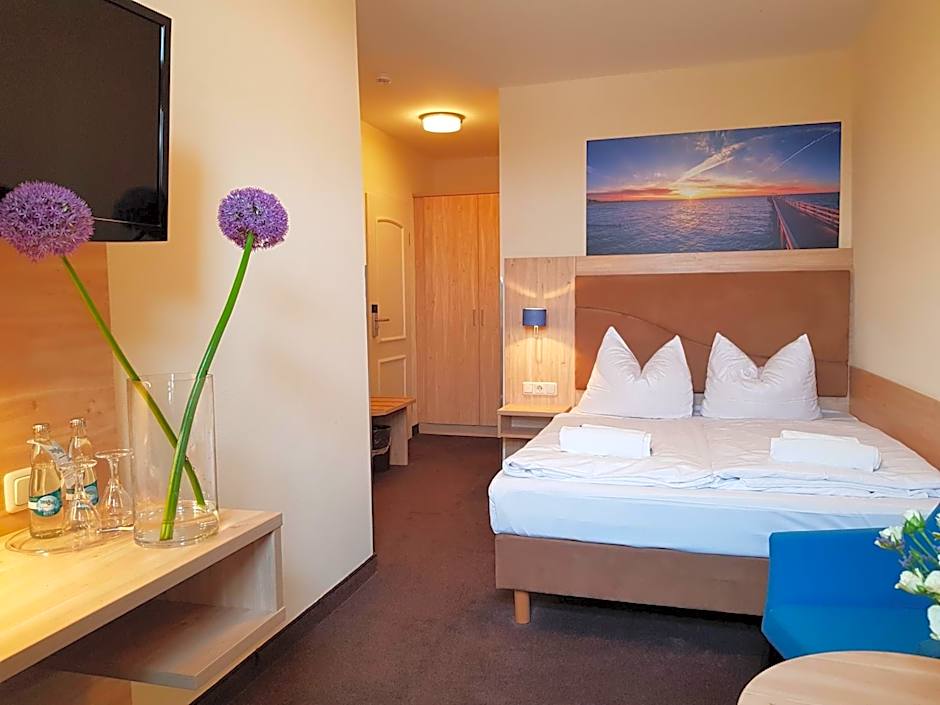 Hotel Am Alten Hafen offers Double Rooms that can accommodate 2 adults and 1 child. These non-smoking rooms have a size of 151 sq ft and feature a Queen size bed.