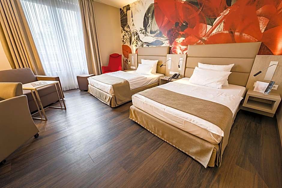 The twin room provides air conditioning, a mini-bar, as well as a private bathroom featuring a bath and a hairdryer. The twin room features a tea and coffee maker, a wardrobe, a safe deposit box, parquet floors and a TV. The unit offers 2 beds.