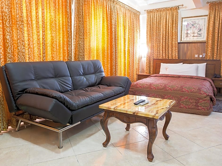 The spacious suite has 1 bedroom and 1 bathroom with a bath and free toiletries. A kitchenette fitted with a refrigerator, a microwave and an electric kettle is available for cooking and storing food. The suite features tiled floors, a seating area with a flat-screen TV with cable channels, air conditioning, a mini-bar, as well as a dining area. The unit has 1 bed.
