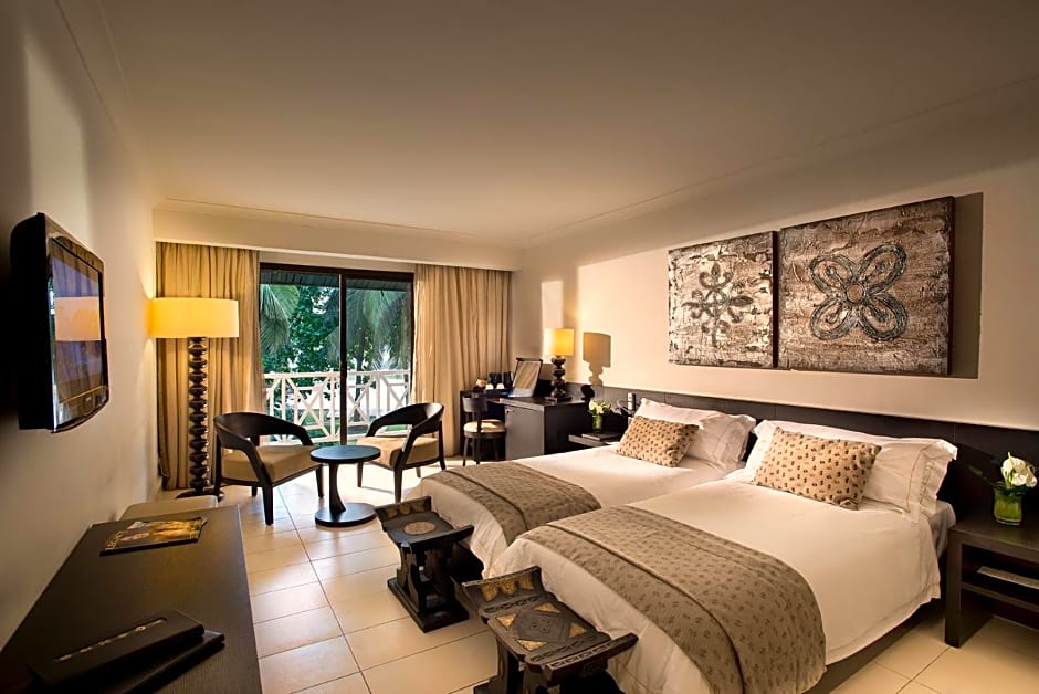 The Labadi Beach Hotel offers a variety of room types including Superior Double, Luxury Double, Superior Twin, and different suite options. Smoking is not allowed in any of the rooms. Accommodations range from 334 sqft to 1313 sqft, with bed sizes including Queen, King, and Twin, and all rooms accommodate 2 adults and 1 child.