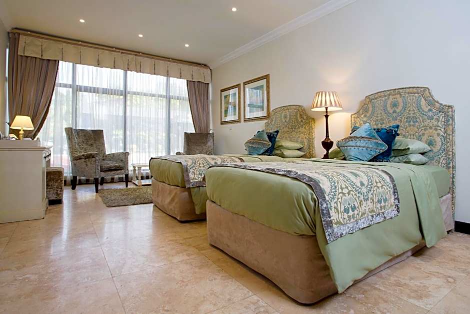 Featuring a separate sitting area with a satellite TV, this 38 square yard Executive Suite also comes with tea and coffee making facilities and an Espresso machine. It is complete with a walk in shower with a bath tub.
