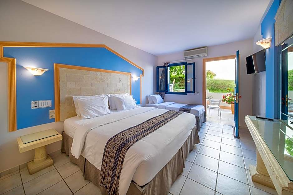 This bright room opens to a private balcony with mountain, village and garden views. Facilities include air conditioning and fridge.