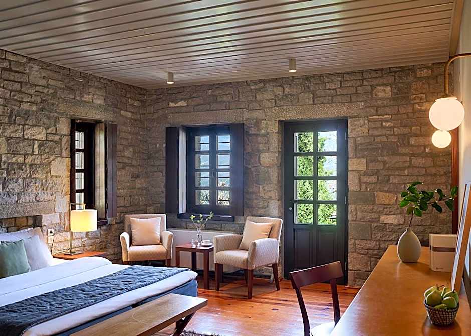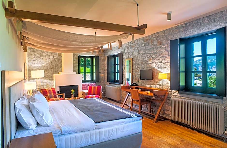 This room has wooden ceiling and an attic with extra bed. Overlooks Papigo towers, Aristi and the nearby villages. Includes mini-bar, TV, air conditioning, direct telephone line, free Wi-Fi. Guests enjoy free usage of the indoor pool, hot tub, sauna and steam bath in the resort's spa center.