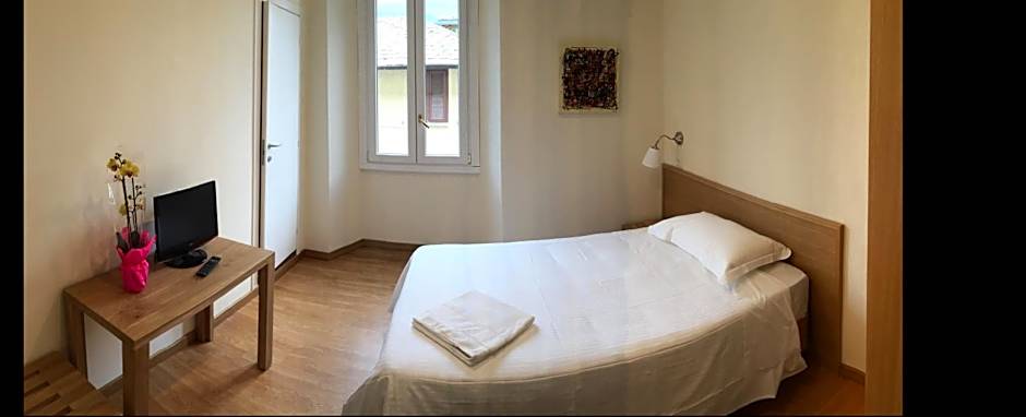 This twin room has a balcony. It provides access to a shared bathroom with shower.