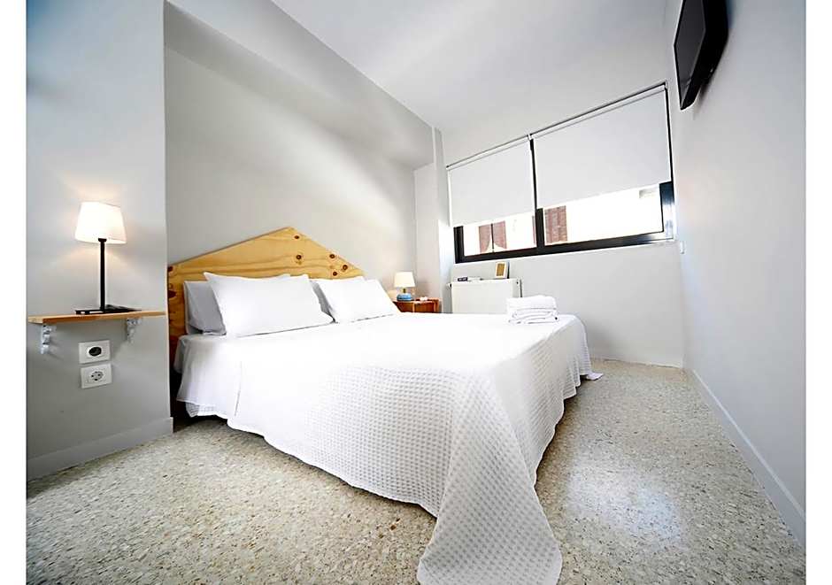 This is an internal studio with an inner window facing the rustic-style glass front of the building. Featuring soundproofed windows, it has an open-plan fully equipped kitchenette, bedroom and big bathroom. It offers easy access to the common work area and living room located right outside the studio.